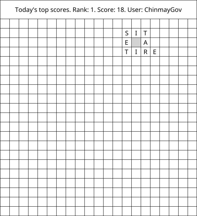 The score is calculated by multiplying the number of letters used to make words by the amount of territory captured. The theoretical maximum score on the desktop board is 34200.